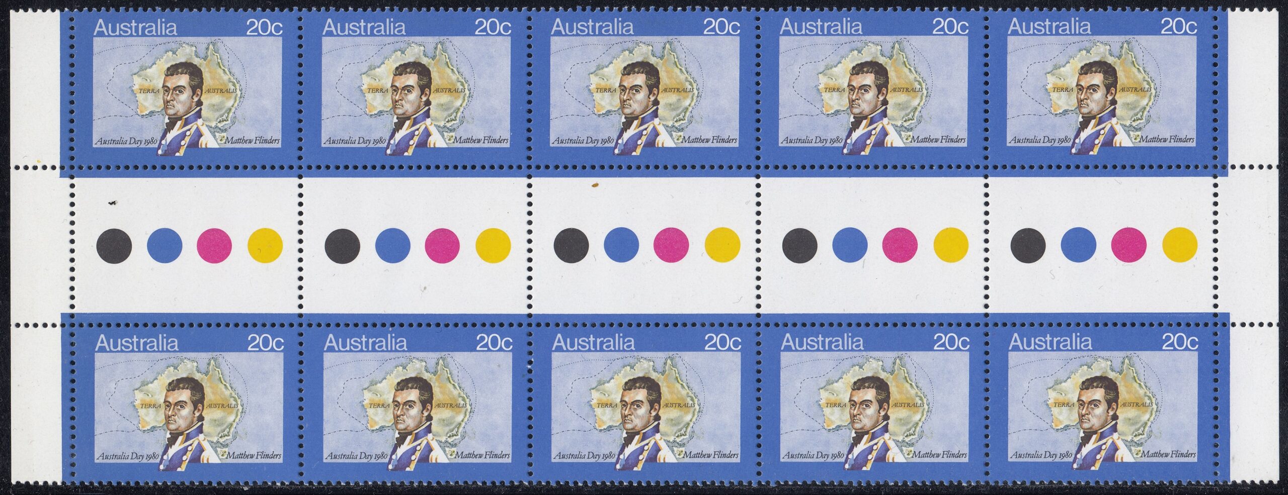 A 20c stamp featuring Matthew Flinders will be issued on 23 January 1980 to commemorate Australia Day 1980.