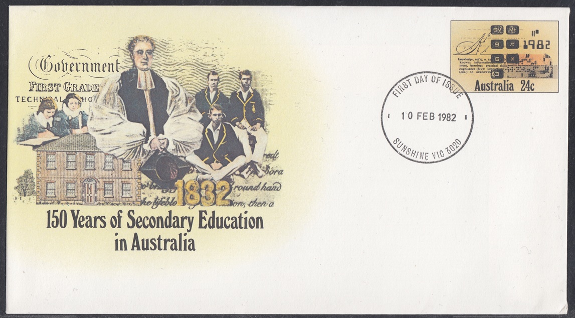 Australia Australia Philately: 1982 150 Years of Secondary Education in Australia – First Day of Issue (VIC) thedigitalphilatelist 10/02/1982 3020 – SUNSHINE 3074 – THOMASTOWN