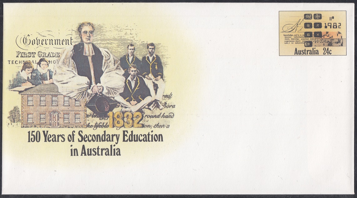 A new pre-stamped envelope will be issued by Australia Post on 10 February 1982. The envelope will commemorate 150 Years of Secondary Education in Australia.