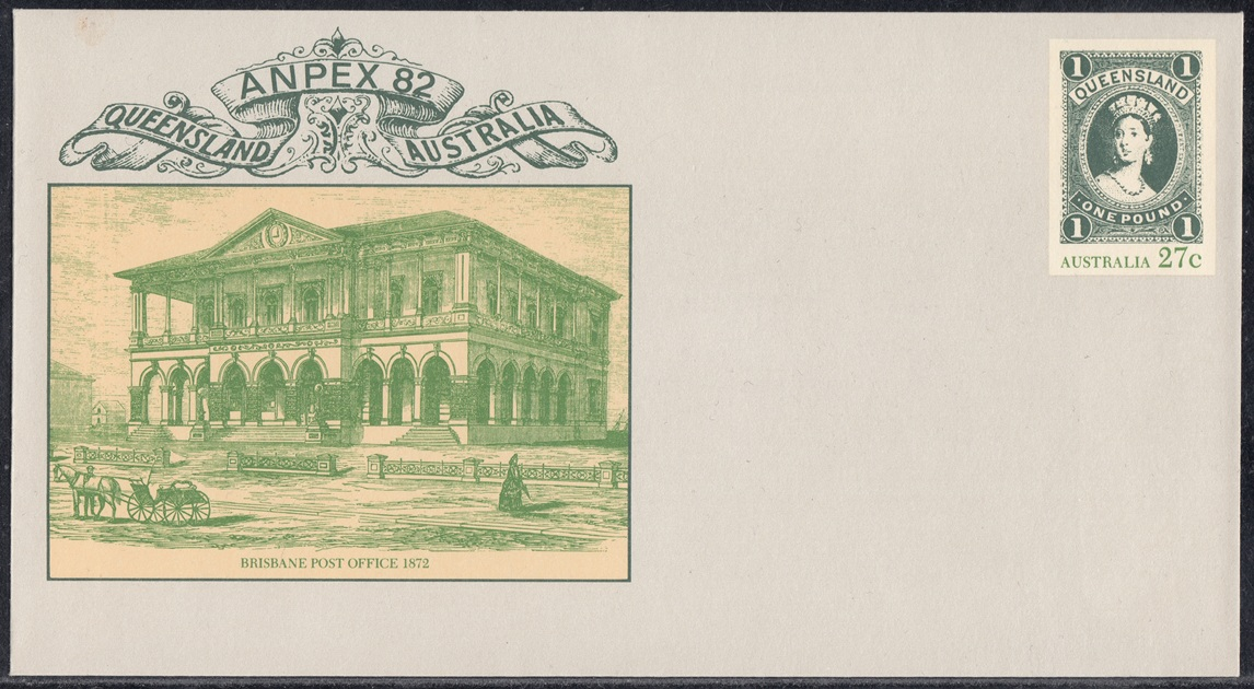 Australia Post will issue a new pre-stamped envelope on 6 October 1982 to commemorate the staging in Brisbane of the Australian National Philatelic Exhibition, ANPEX 82.