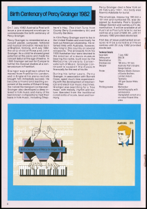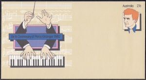 On 7 July 1982 Australia Post will issue a pre-stamped enveloped to commemorate the birth centenary of Pergy Grainger.