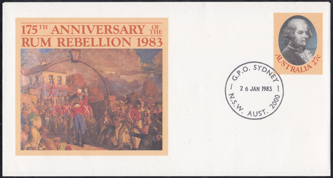Australia Australia Philately: 1983 175th Anniversary of the Rum Rebellion – Pre-Stamped Envelope No.060 (NSW) thedigitalphilatelist 26/01/1983 2000 – G.P.O. SYDNEY Share this: Share on Facebook (Opens in new window) Facebook Share on X (Opens in new window) X Like this:Like Loading... Related