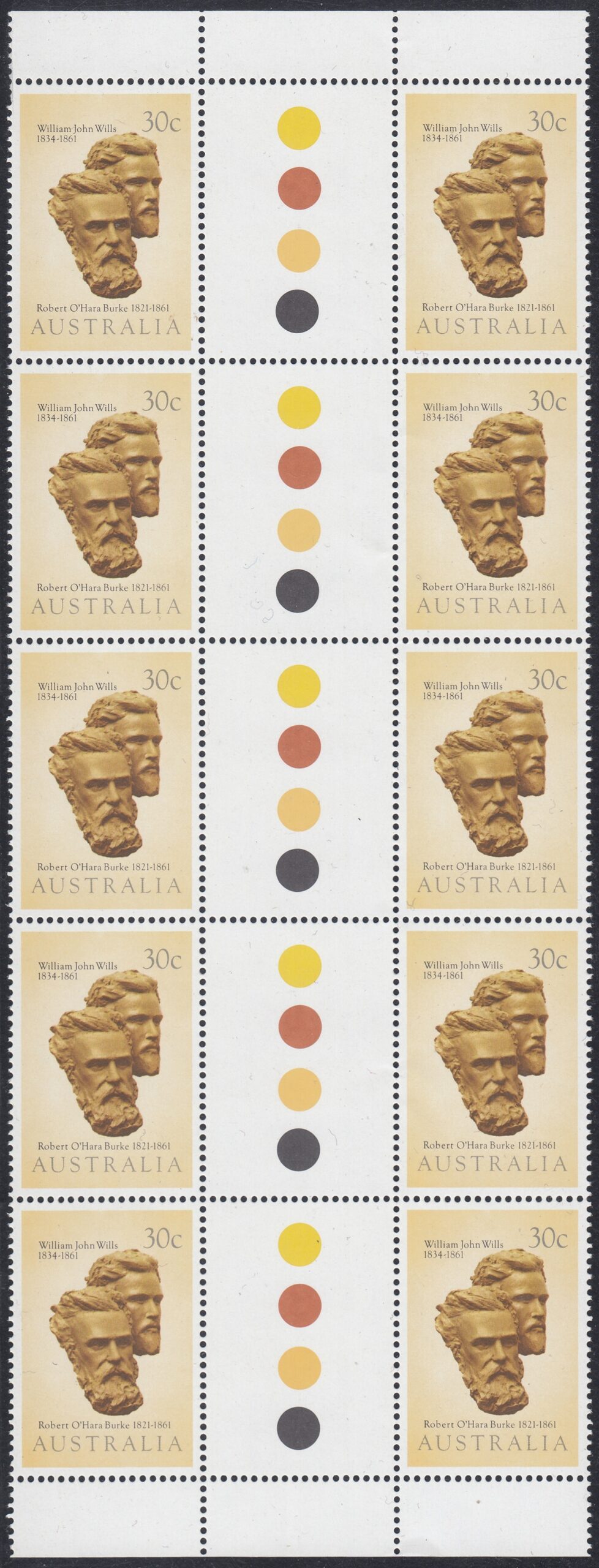 - Sheet: Issued in two sheets of 100 stamps in two panes (R10 x 5) separated by vertical gutter.