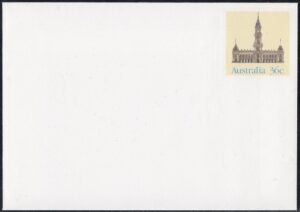 A new set of seven definitive pre-stamped envelopes will be released by Australia Post on 8 September 1986. The theme of the series is restored public buildings, illustrating superb examples of architecture from Australia’s earlier days.
