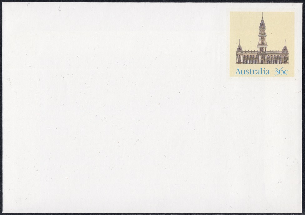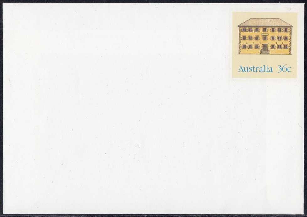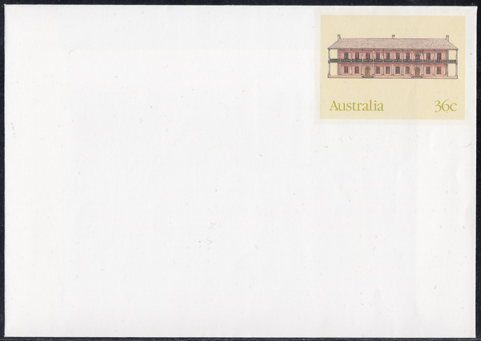 Buildings shown on the pre-stamped envelopes include examples from the Australian Capital Territory and from each Australian State.
