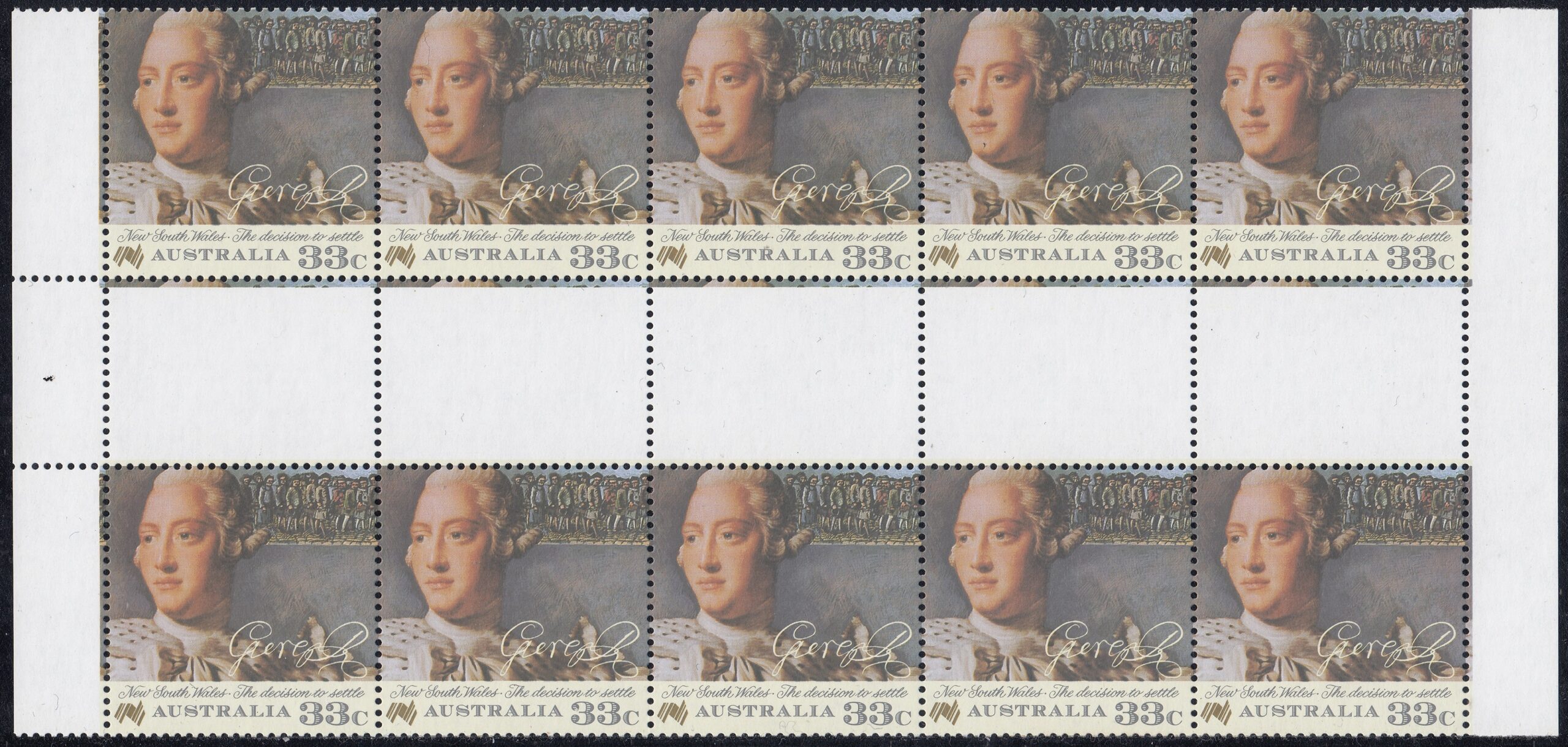 - Sheet: 50 stamps (R5 x 5) printed in two panes, separated by horizontal gutter.