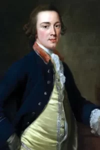 The portrait is of Thomas Townshend (Lord Sydney), attributed to artist, Gilbert Stuart. The backgrounds are based on an engraving and a painting by William Bradley.