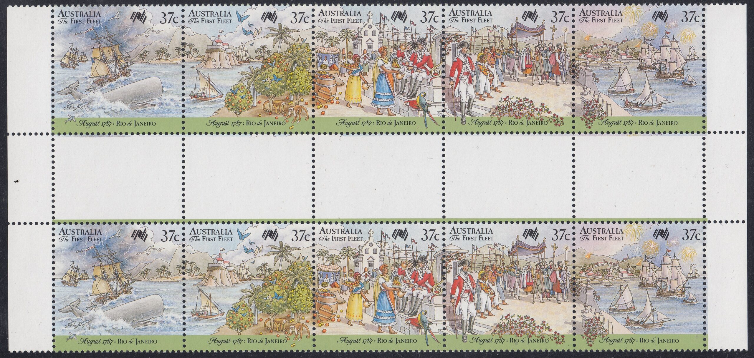 The set was originally designed with the postal rate of 36c. On 1 July 1987, the ordinary postal rate increased to 37c per stamp.