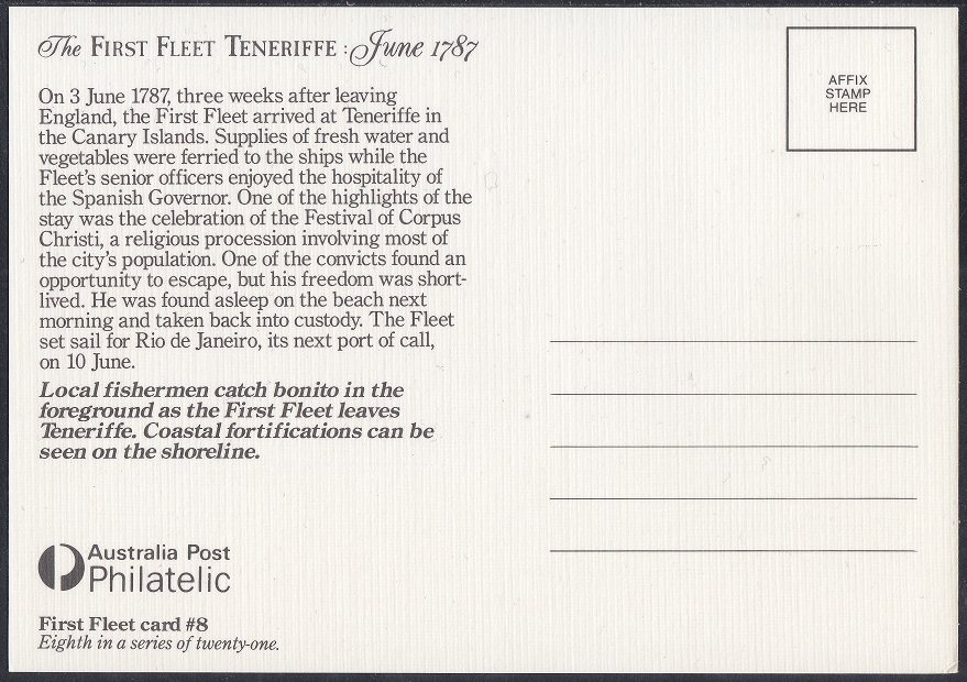 - Series: The First Fleet: Teneriffe June 1787 (Maximum Cards)