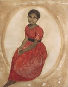 Mathinna (from the south-west coast of Van Diemen’s Land adopted in 1841 by Lady Franklin, the Governor’s wife) by Thomas Brock, Tasmanian Museum and Art Gallery.