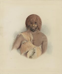 Woureddy (from Bruny Island, Van Diemen’s Land) by Thomas Brock, Tasmanian Museum and Art Gallery.