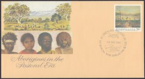 Stamp area: Natives Camping by William Cawthorn, Mitchell Library, State Library of New South Wales.