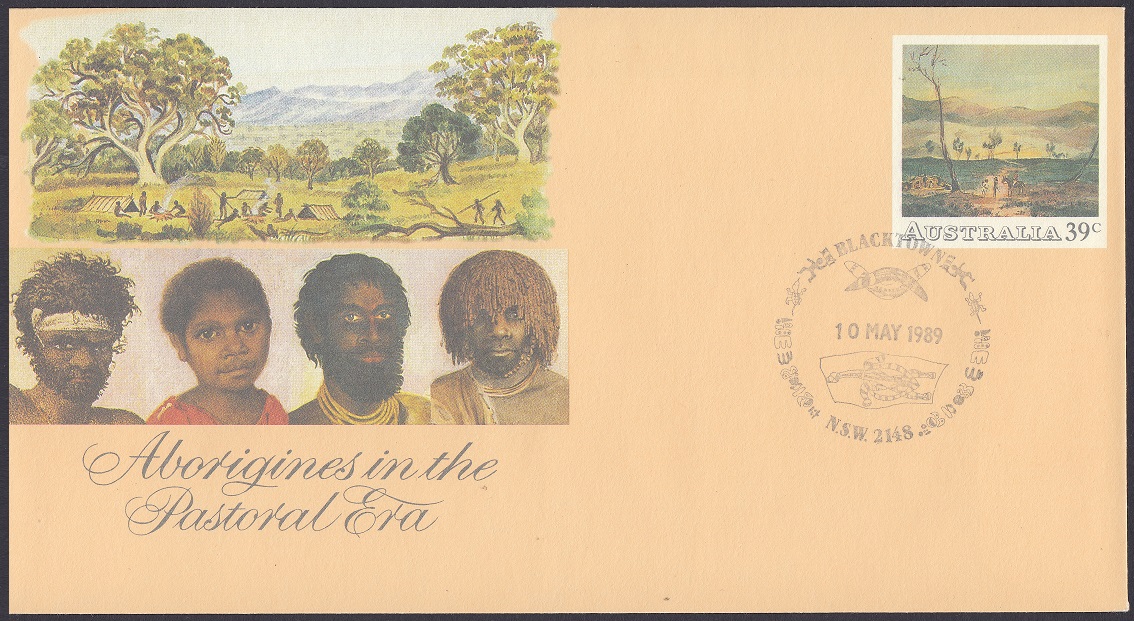Stamp area: Natives Camping by William Cawthorn, Mitchell Library, State Library of New South Wales.