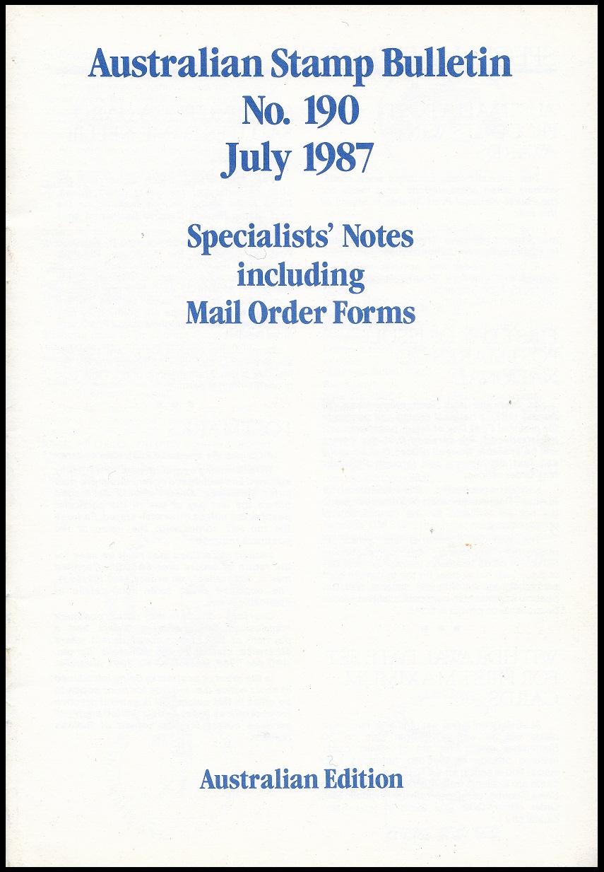 Australia Australia Philately: Australia Post Stamp Bulletin No.190 – July 1987 thedigitalphilatelist 07/01/1987