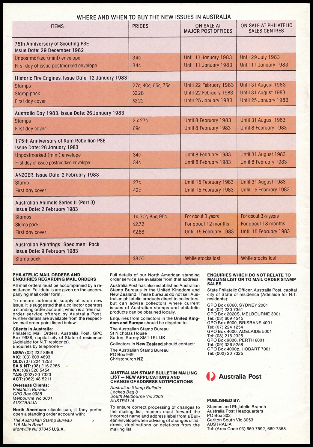 Australia Australia Philately: Australian Stamp Bulletin No.164 – January-February 1983 thedigitalphilatelist 01/01/1983 Share this: Share on Facebook (Opens in new window) Facebook Share on X (Opens in new window) X Like this:Like Loading... Related