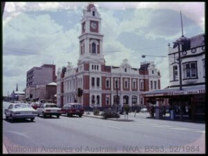 The Geelong Post Office was located on the corner of Ryrie and Gheringhap Streets. The building was opened in 1891. A clock tower was added in 1911.