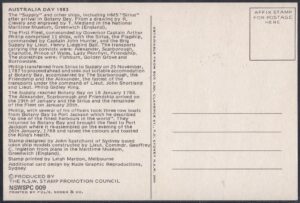 Phillip, with several of his officers took three row boats from Botany Bay to Port Jackson which he described “as one of the finest harbours in the world”. They returned to Botany Bay and brought the fleet to Port Jackson where it reassembled in the evening of the 26th January, 1788 and raised the colours and toasted the King’s health.