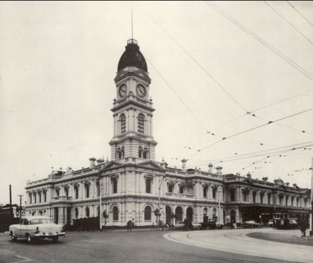North Melbourne post office on Errol Street was originally part of the Hotham Town Hall. It was opened in 1860 and was located on Errol Street, with the post office and telegraph office being part of the recessed arcade on the building’s frontage.