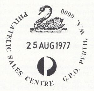 The Philatelic Sales Centre, originally located in the centre of the G.P.O., was expanded and relocated to a special room on the southern side of the G.P.O. It commenced operations on 17 August 1977 and a special pictorial, and a new first day of issue, postmarker was introduced. Both incorporated a line illustration of the emblem of Western Australia – the Black Swan (Cygnus atratus).