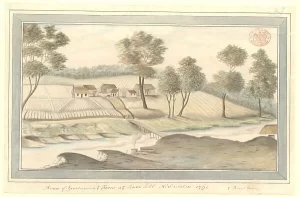 In 1791 Governor Phillip appointed Superintendent Thomas Daveney to select, plan and superintend a more extensive “second settlement” further up the Toongabbie Creek. The second Government farm was built by convict labour from 1791 to 1813. It employed up to 500 convicts, mostly from the Third Fleet. The convicts were housed in 13 large tent huts and cleared 134 acres in 30 days. The farm then planted maize.