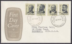 Sydney South became a first day of issue postmarker officer on 18 October 1967. A first day of issue postmarker was introduced the same day – the first day of issue of the 1967 5c Christmas stamp.