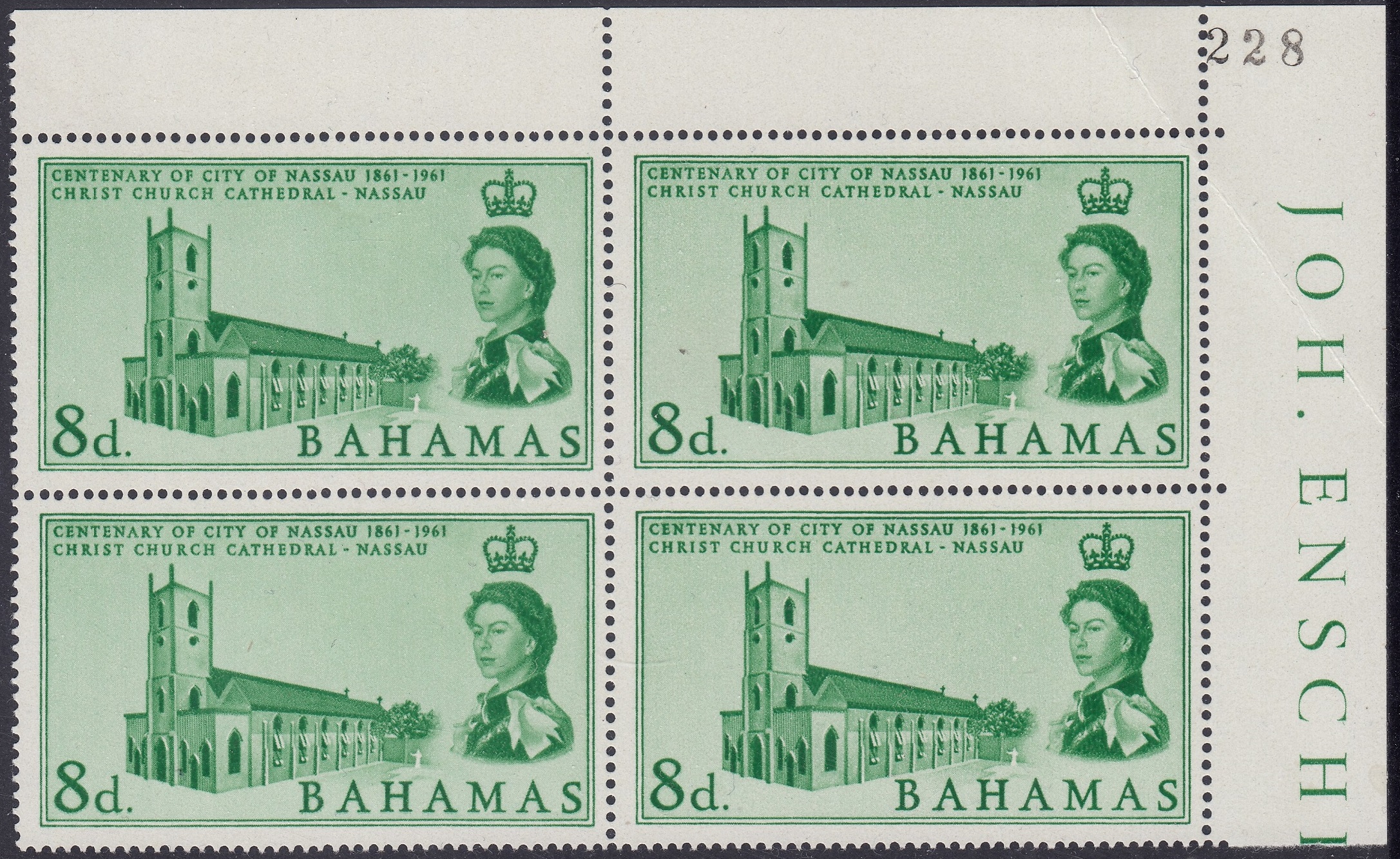 Bahamas Philately: 1962 City of Nassau Centenary (1861-1961) – 8d Christ Church Cathedral