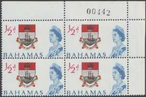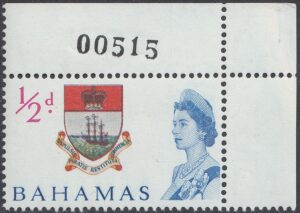 This stamp depicts the first coat of arms, which replaced the colony badge, in 1959. It was in use until 1971.