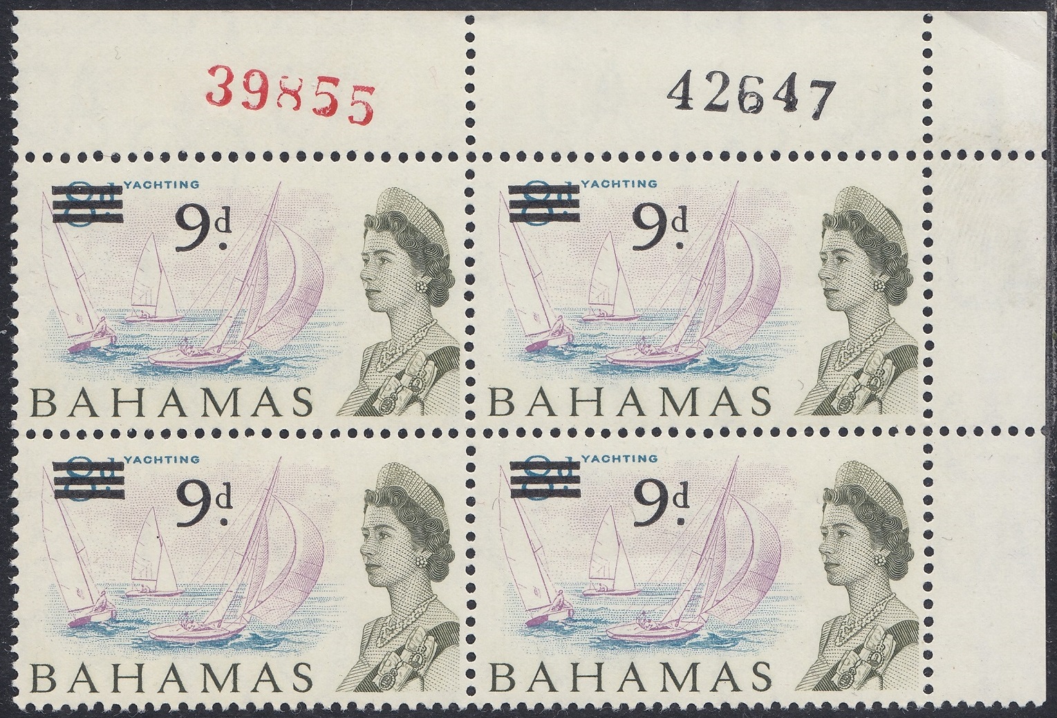 The postal rate for postcards sent to the USA by air was 9d, which required a 1d and 8d stamp to make up the rate. As postcards lack sufficient room to add the two stamps, a 9d overprint was added to the 8d stamp of the 1965 definitive series.