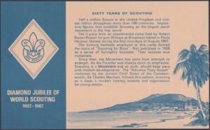 The Crown Agent’s in London, upon announcement of the above contract, announced they would no longer handle distribution of the Diamond Jubilee of World Scouting issue.