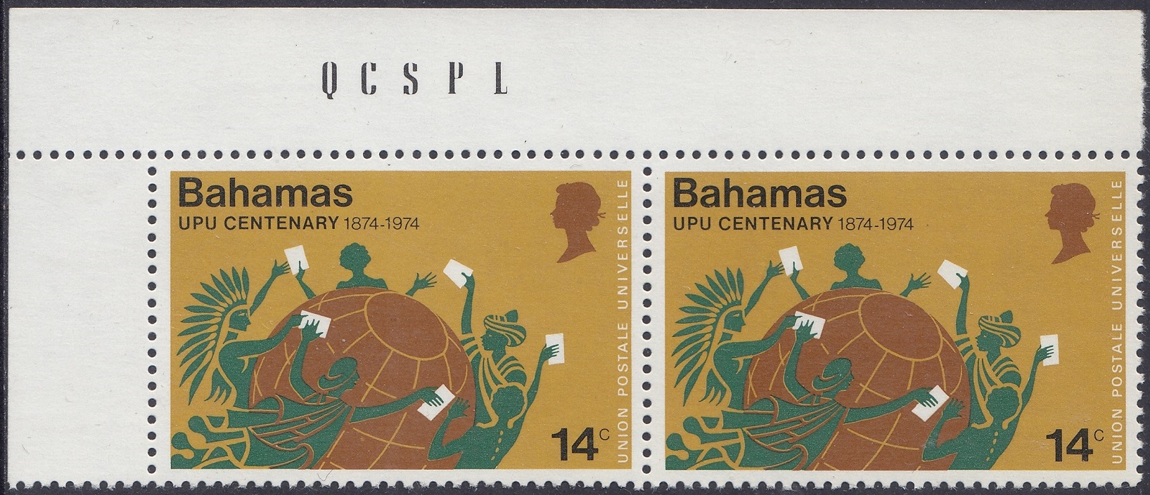 Bahamas Bahamas Philately: 1974 Universal Postal Union Centenary (1874-1974) – 14c UPU Monument thedigitalphilatelist 23/04/1974 Details Designer: P Powell Printer: Questa Colour Security Printers Limited (The House of Questa) Process: Lithography Paper: Watermark: Multiple St Edward’s Crown Block CA Perf: 14 (comb) Cylinders: Sheet: Quantity: Share this: Share on Facebook (Opens in new window) Facebook Share on X (Opens in new window) X Like this:Like Loading... Related