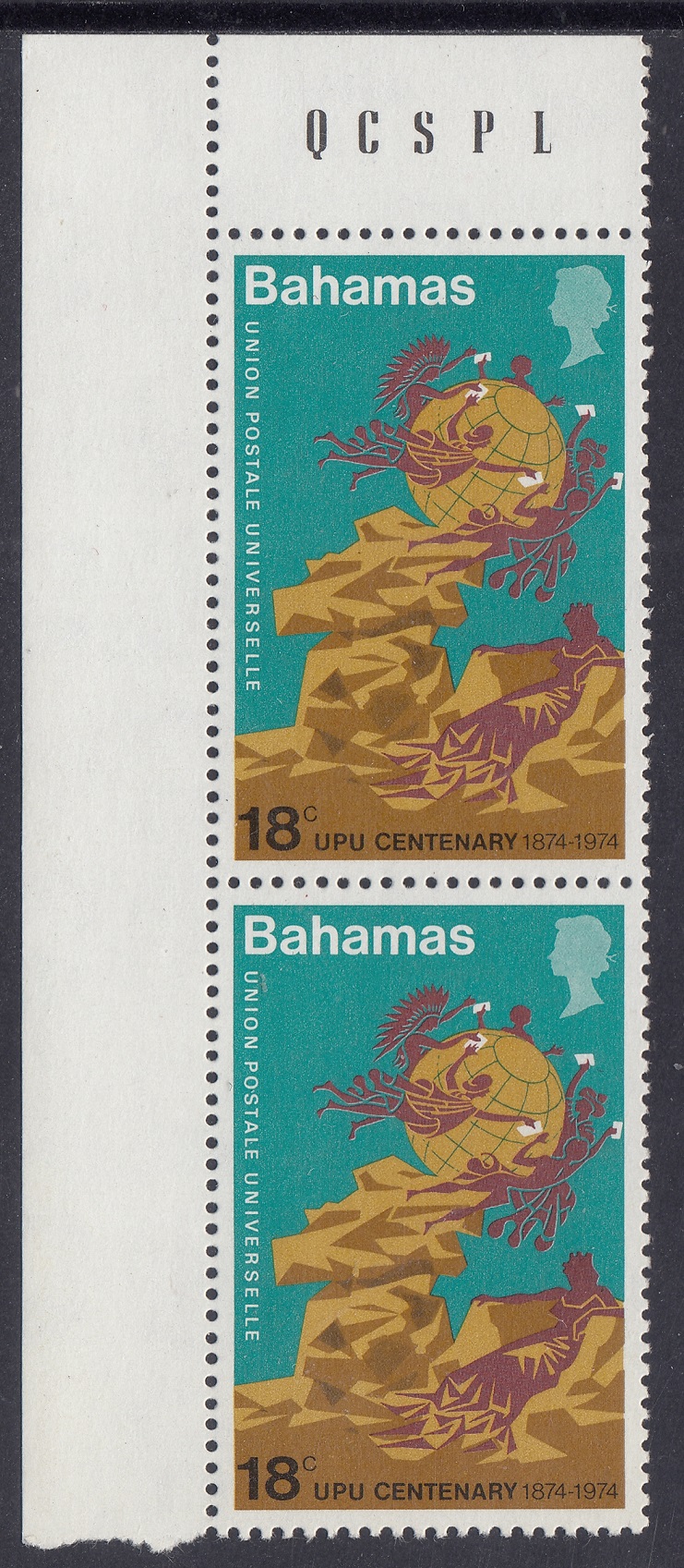 Bahamas Bahamas Philately: 1974 Universal Postal Union Centenary (1874-1974) – 18c UPU Monument thedigitalphilatelist 23/04/1974 Details Designer: P Powell Printer: Questa Colour Security Printers Limited (The House of Questa) Process: Lithography Paper: Watermark: Multiple St Edward’s Crown Block CA (sideways) Perf: 14 (comb) Cylinders: Sheet: Quantity: Share this: Share on Facebook (Opens in new window) Facebook Share on X (Opens in new window) X Like this:Like Loading... Related