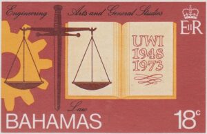 Bahamas Philately: 1974 University of West Indies (1948-1973) – 18c Engineering, Arts and General Studies, Law