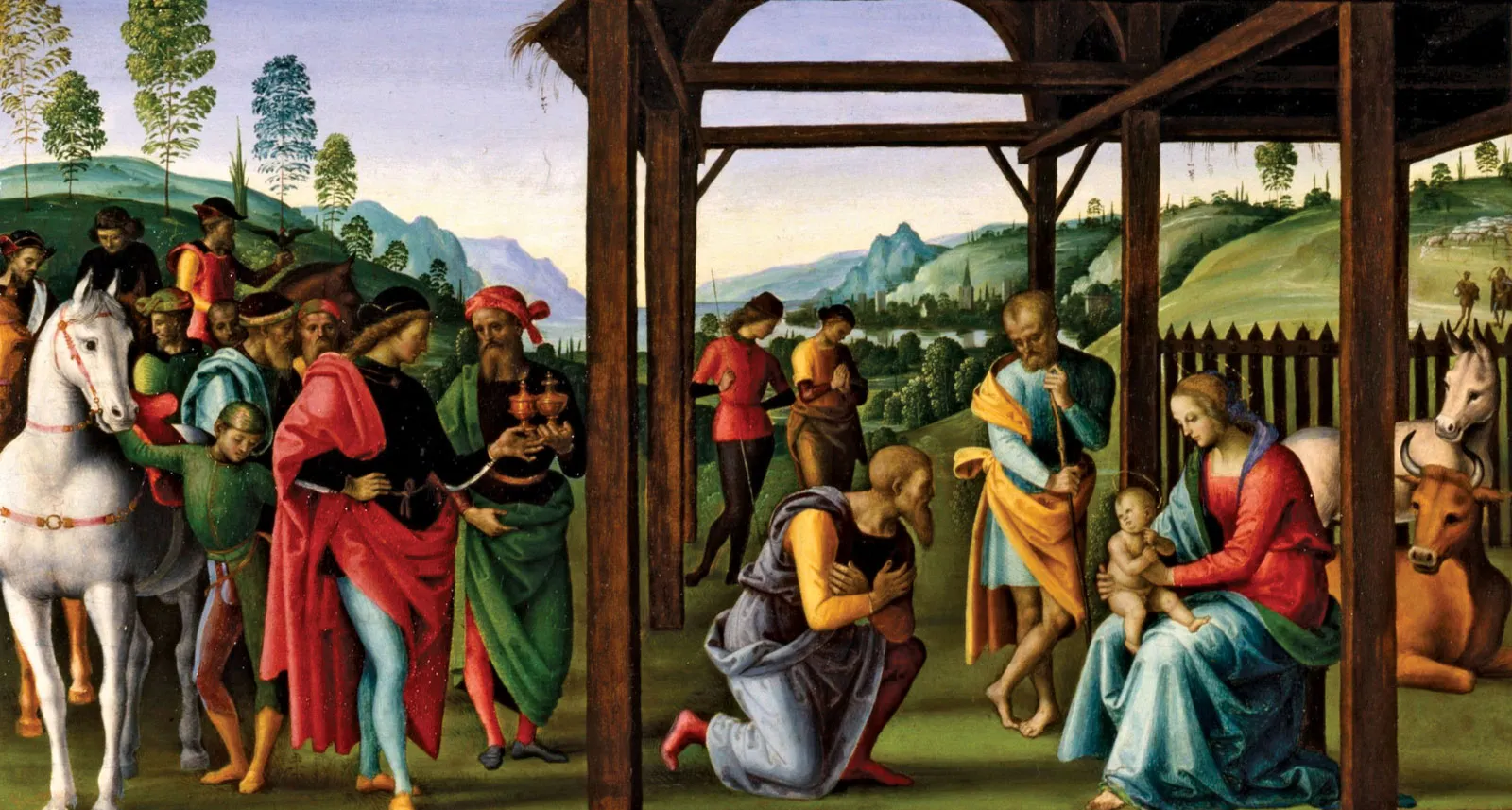This wood panel, alongside two others equally conserved at the Museum of Rouen (the Baptism and the Resurrection of Christ) come from the predella (lower part) of an altarpiece that Pietro Perugino was commissioned to produce in 1495 for the church of San Pietro in Perugia.