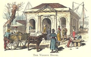 Vendue House, situated on Bay Street, Nassau, was built some time before 1769. It was one-storey building, furnished only with a roof and rounded pillars and was erected for the convenience of traders selling their goods at Public auctions.