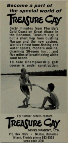 In 1968, the area was developed as part of a $16m real estate development plan by Deltec Banking Corporation. The development included the Treasure Cay Beach Hotel and Villas, the Treasure Cay Tennis Club, the Treasure Cay Golf and Country Club with an 18-hole Dick Wilson championship course, and the Treasure Cay International Airport.