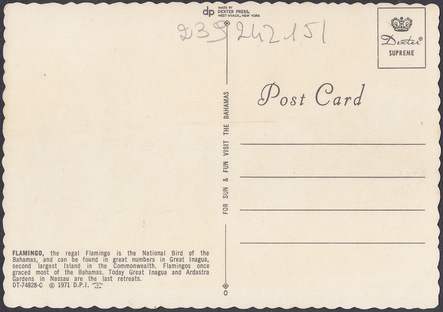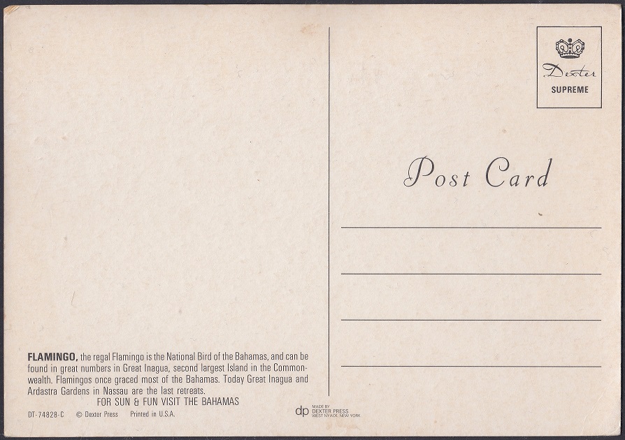 The American flamingo is the only one found in the Bahamas and have the brightest plumage of all flamingo species. One of the most distinctive attributes of P. ruber is its unipedal stance, or the tendency to stand on one leg. While the purpose of this iconic posture remains ultimately unanswered, strong evidence supports its function in regulating body temperature