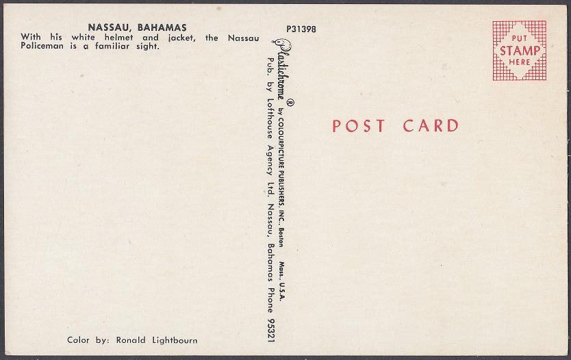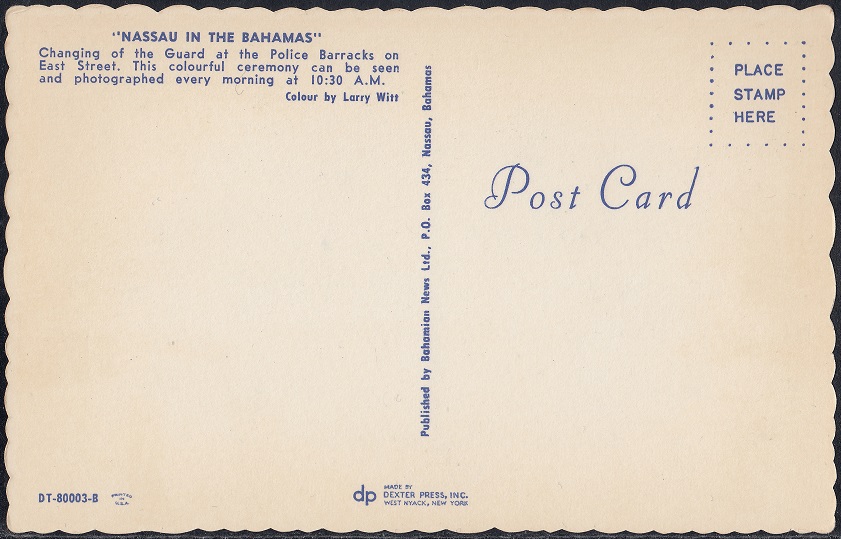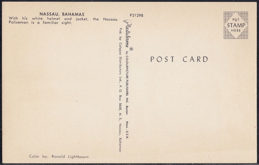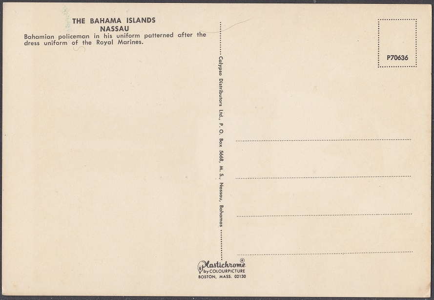 “The Bahamian Constable is probably the most photographed individual in the Bahamas. His colourful uniform, strict military bearing and courteous manners, make him a favourite with shutterbugs both local and foreign.