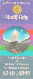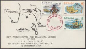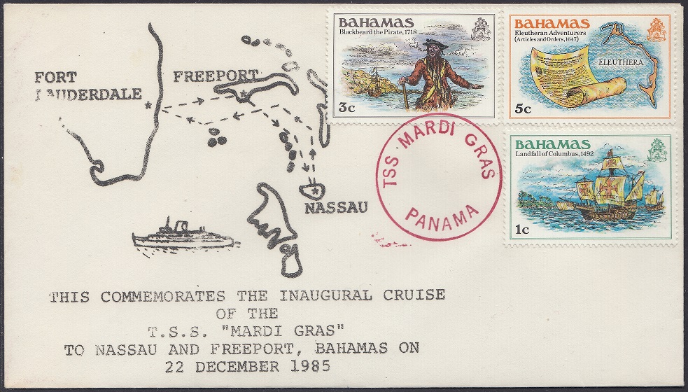 Commemorating the inaugural cruise of the T.S.S. Mardi Gras to Nassau and Freeport, Bahamas.