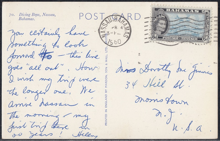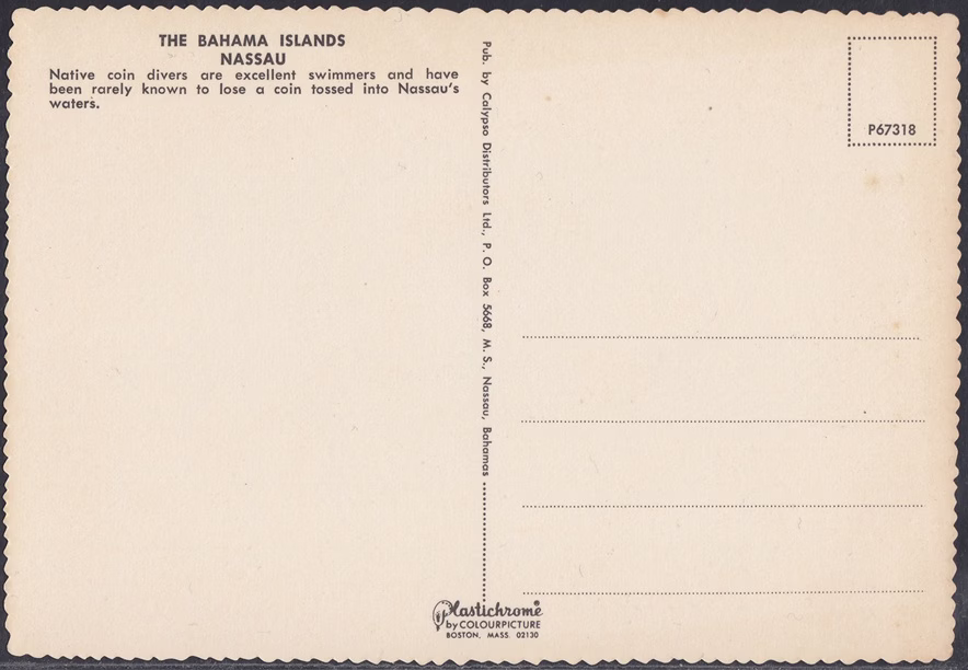 Native coin divers were a tourist attraction in Nassau. The coin divers would greet cruise ships where tourists would throw coins in the water, and the skilled divers would dive to retrieve them.