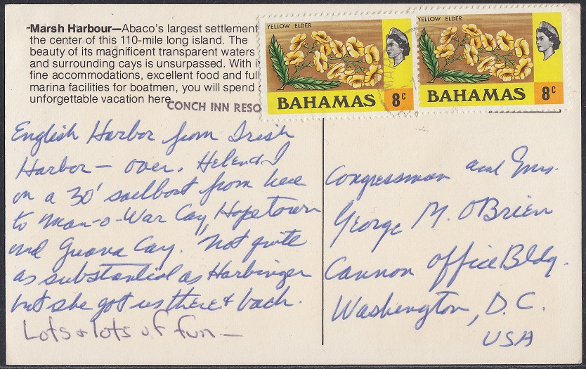 The Conch Inn Resort was located at Marsh Harbour in the Abaco Islands. It was owned by Wally Smith, a former Canadian resident, and appears to be have begun operations c.1974. Smith also owned the Conch Crawl bar next to the inn.