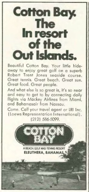 In 1973, Rock Sound Club & Cottages was closed indefinitely. It reopened the same year but was rebranded as Cotton Bay – A Beach, Golf and Tennis Resort.