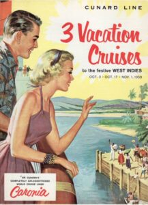 In 1958, the RMS Caronia was scheduled to undertake a 52 day cruise to the Mediterranean, departing from New York on 3 October 1958. However, political tensions in the middle-east resulted in the cruise being cancelled.
