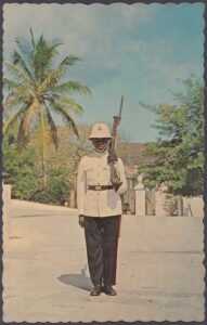 | DT-92334-B | Police guard standing sentry at Government House. | 1964 |