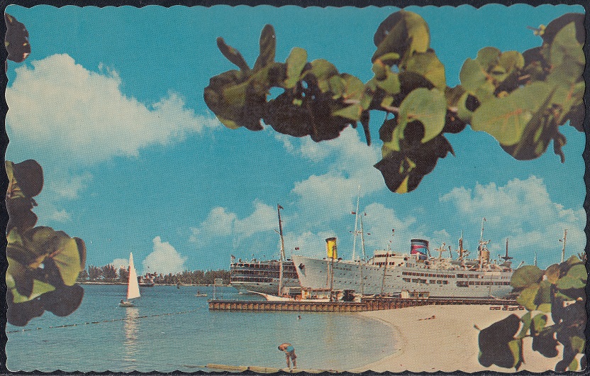 | DT-92347-B | Tropical Nassau Beach with cruise ship in the background. | 1964 |