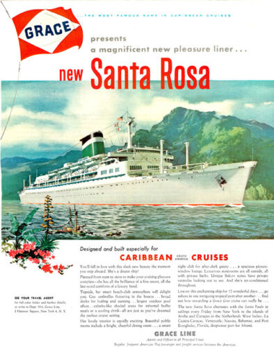 In 1956 the Grace Line ordered two new ships to replace the aging 1932-built sisters the Santa Rosa and Santa Paula. The new vessels were referred to as the New Santa Rosa and New Santa Paula and they were specifically built and designed to service the Caribbean. Both ships sailed weekly on 13 day cruises to the Caribbean, South America and Florida.