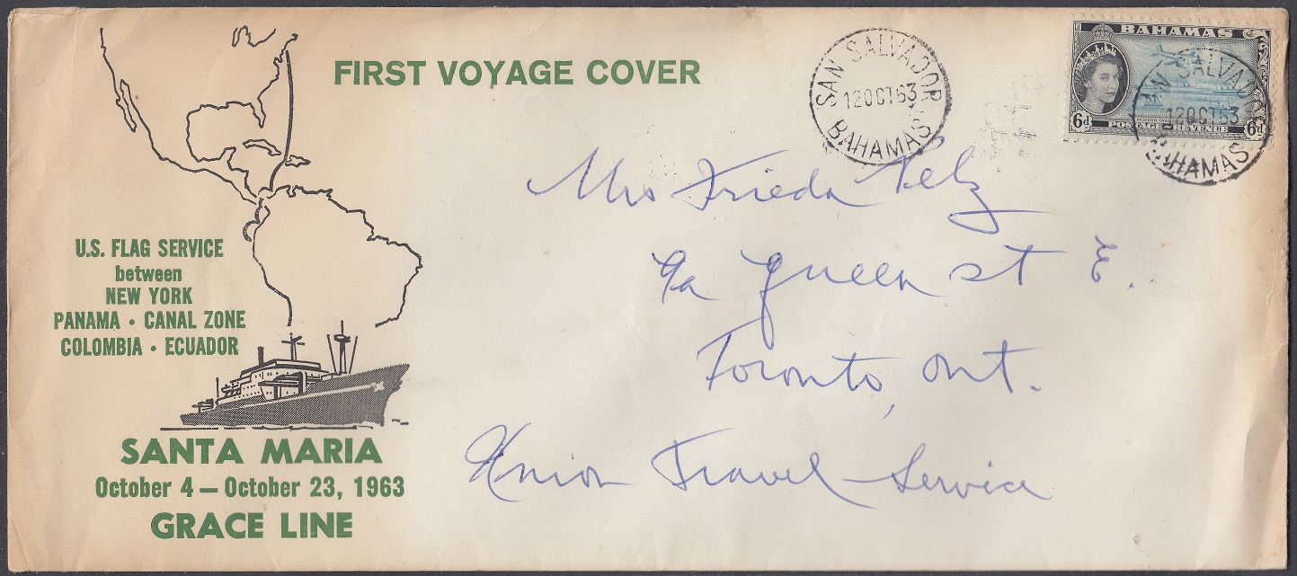 The maiden voyage of the Santa Maria took place from 4 October to 23 October 1963. The ship departed from New York and sailed to Panama, Canal Zone, Colombia and Ecuador. Captain Raymond J. Tierney was assigned to command the new ship.