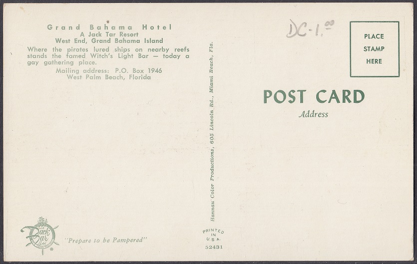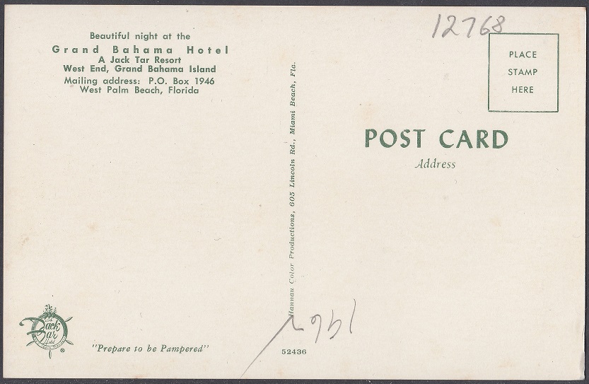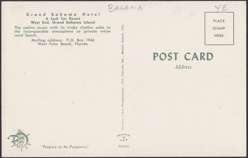 By July 1961, the Grand Bahama Club (A Jack Tar Hotel) was re-branded as the Grand Bahama Hotel (A Jack Tar Resort).