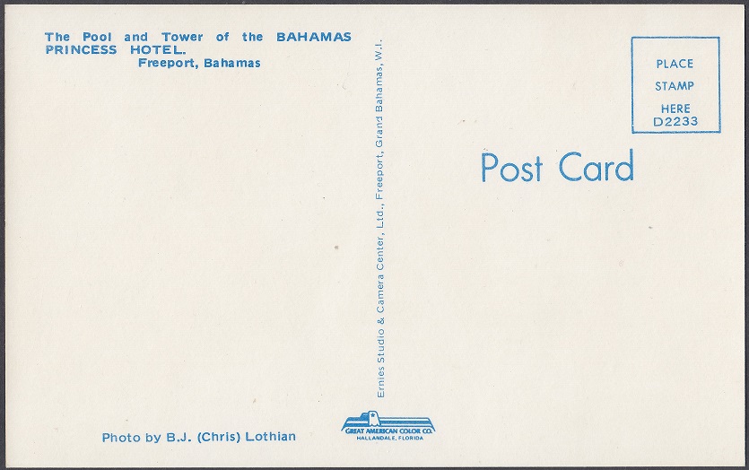 | D2233 | The Pool and Tower of the Princess Hotel, Freeport, Bahamas. |