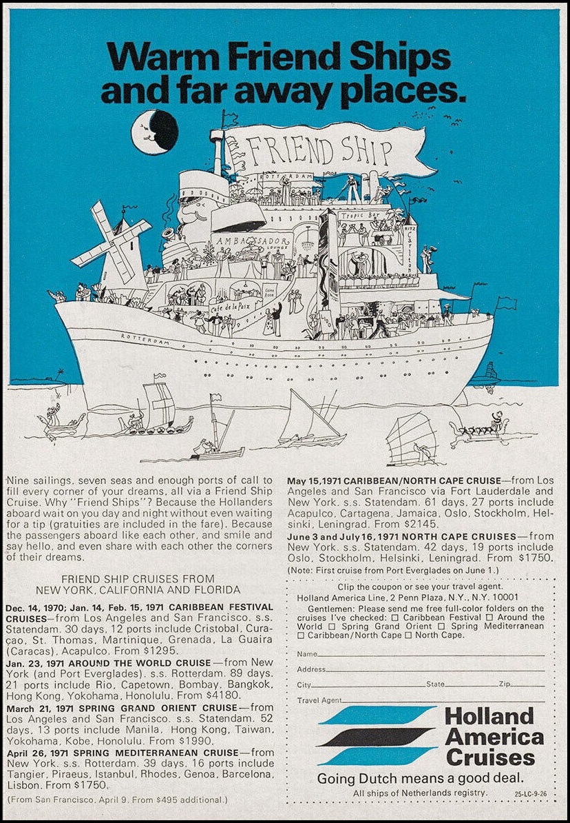 In 1969, Holland America introduced a new logo. The logo represented the brand’s image: water, movement, experience. going places, and streamline.