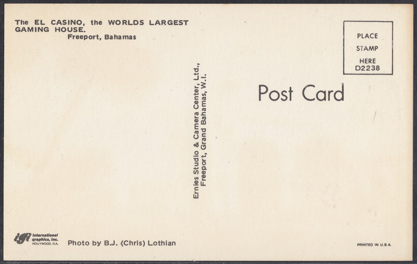 | D2238 | The EL CASINO, the WORLDS LARGEST GAMING HOUSE. |